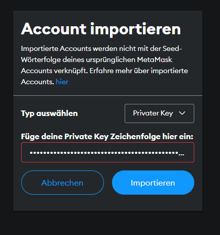 Account aus Ganache per Private Key importieren:
